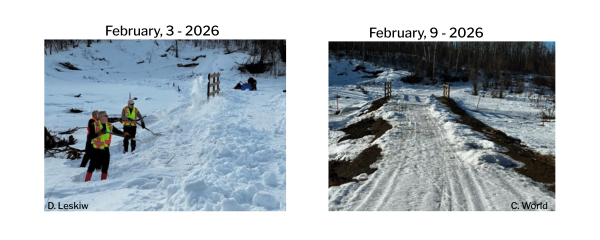President, Charles World states: “This decision was difficult for us to make, especially since we had every reason to believe there would be enough snow. Just last week, the outlook was positive. Temperatures were forecast to drop this week, there was plenty of snow on the ground, and groomers can work wonders—as other organizations demonstrated this weekend. Even early this morning, there were no signs of concern. However, during our trail visit later this afternoon, it became clear that we could no longer offer an enjoyable ski experience. The photos from the Chief of Course and Chief of Loppet show how dramatically the conditions have changed in less than seven days.”
